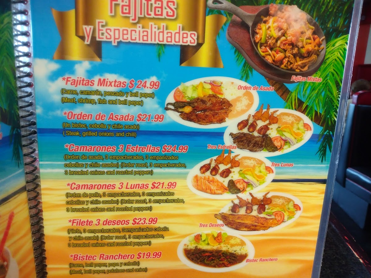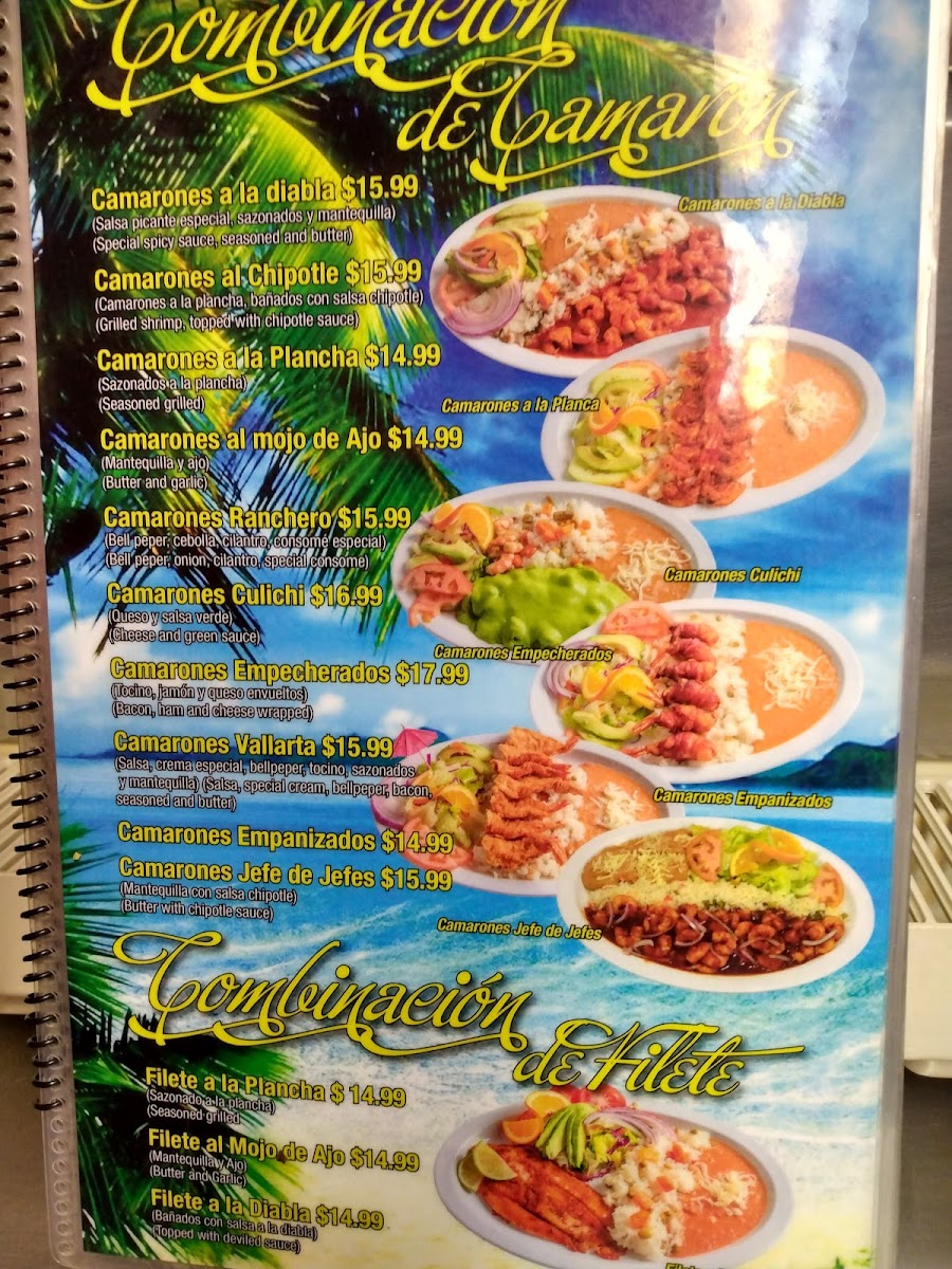 The menu offers a variety of traditional Mexican and seafood dishes suitable for different dining occasions, including breakfast options, light meals, and beverages. It is structured into several categories to help visitors navigate the selections efficiently.