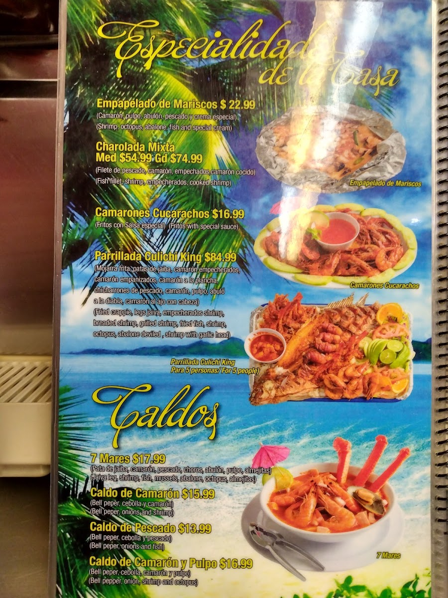 Mariscos Aguachiles Culichi Menu